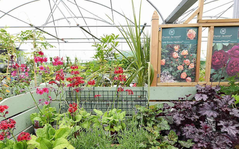 Now the nursery boasts a varied selection of bedding plants, shrubs, trees, and an abundance of hanging baskets. Helen reports that it isn’t unusual for David to take orders for over 1000 hanging baskets a year. “At this time of the year the nursery is the main driver here,” she says. “Lots of customers are travelling here specifically for the plants and everything else is just an extra.”